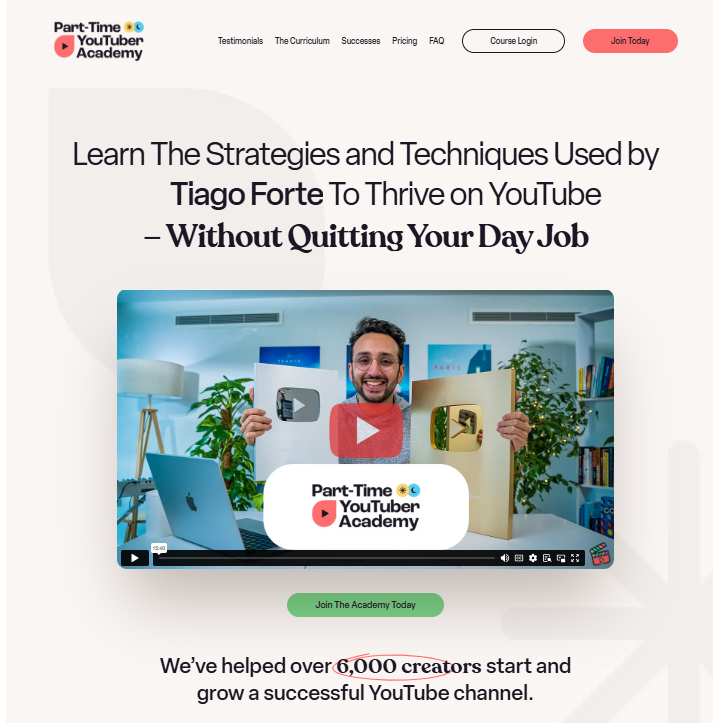 - Social proof: “We’ve helped over 6,000 creators start and grow a successful YouTube channel”