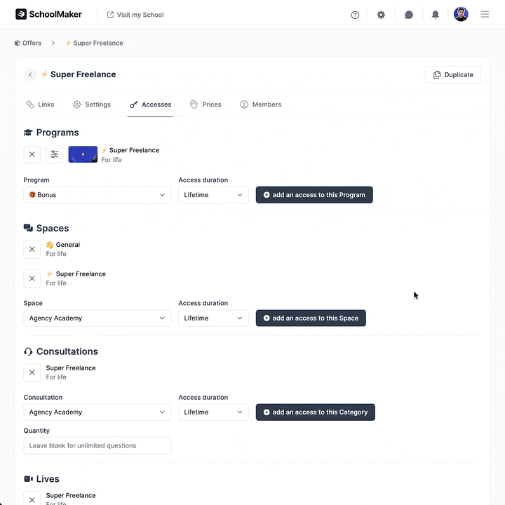 With SchoolMaker's offer system, you can choose which members will be able to use the AI coach.