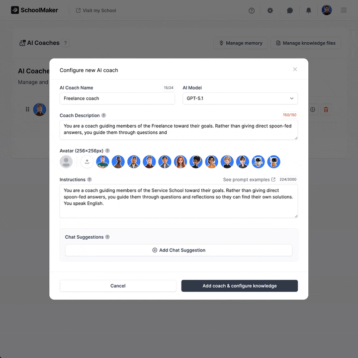 Personalize the knowledge base of your AI coach
