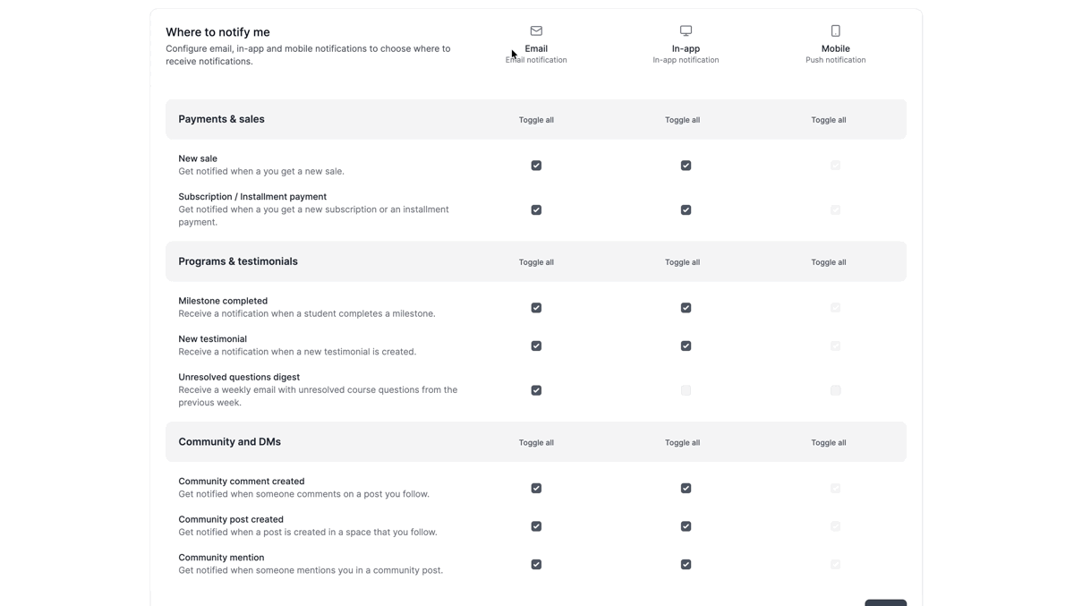 - ✨ Notification: Added "Live replay available" & "Unresolved questions digest" notification control.